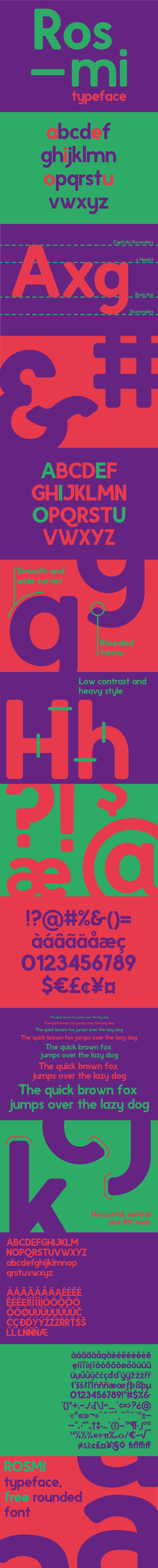 Rosmi is a rounded typeface designed to be used on large sizes but it also works great for texts with medium sizes. Its width and curves make this typeface warm and friendly. A hard but also soft font.